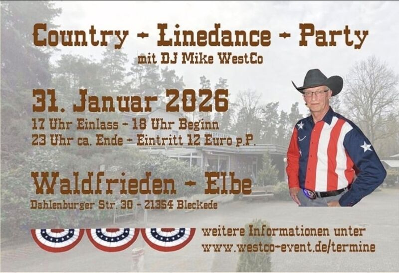 Linedance Party in Bleckede, Gaststätte Waldfrieden / Elbe. Wer Interesse hat ... hier gibt es weitere Infos oder Kirsten ansprechen.